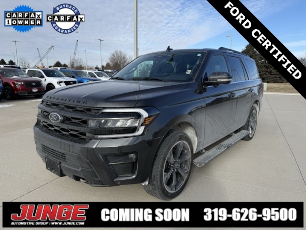 Limited 4WD 10-Speed Automatic **ONE OWNER**, **NAVIGATION/GPS**, *SUNROOF/MOONROOF*, **LEATHER**, **HEATED SEATS**, *NEW ARRIVAL*, **LOCAL TRADE**, **4WD**, Ford Gold Certified Certified, 4WD, 12 Speakers, 15.5" LCD Capacitive Touchscreen, 1st & 2nd Row Floor Mats w/Logo, 26mm Engine Radiator, 3.73 Axle Ratio, 360-Degree Camera w/Split View, 360-Degree Camera w/Trailer Reverse Guidance, 3rd row seats: split-bench, 4-Wheel Disc Brakes, ABS brakes, Adjustable pedals, Air Conditioning, Alloy wheels, AM/FM radio: SiriusXM with 360L, Auto High-beam Headlights, Auto-dimming door mirrors, Auto-dimming Rear-View mirror, Automatic temperature control, Black Headlamp and Fog Lamp Bezels, Black Rear Bumper, Black Roof Rack Side Rails, Body Color Door Handles, Brake assist, Bumpers: body-color, Compass, Connected Built-In Navigation, Delay-off headlights, Driver door bin, Driver vanity mirror, Dual front impact airbags, Dual front side impact airbags, Ebony Black Bar and Mesh Grille, Ebony Black Power Deployable Running Boards, Ebony Black Tailgate Applique, Electronic Stability Control, Emergency communication system: SYNC 4 911 Assist, Equipment Group 303A Stealth Package, Exterior Parking Camera Rear, Four wheel independent suspension, Front anti-roll bar, Front Bucket Seats, Front Center Armrest, Front dual zone A/C, Front fog lights, Front License Plate Bracket, Front reading lights, Fully automatic headlights, Garage door transmitter, Hands-Free Foot-Activated Liftgate Removal (DISC), Heated & Ventilated Leather Front Captain's Chairs, Heated door mirrors, Heated front seats, Heated rear seats, Heated steering wheel, Heated/Ventilated Lthr Front Captain's Chairs (A), Heavy-Duty Trailer Tow Package, Illuminated entry, Instrument Panel Cluster, Integrated Trailer Brake Controller, Leather steering wheel, LED Taillamp w/Black Bezels, Low tire pressure warning, Memory seat, Navigation system: Connected Navigation, Occupant sensing airbag, Outside temperature display, Overhead airbag, Overhead console, Panic alarm, Panoramic Vista Roof, Passenger door bin, Passenger vanity mirror, Pedal memory, Power door mirrors, Power driver seat, Power Liftgate, Power moonroof, Power passenger seat, Power steering, Power windows, Power-Folding Sideview Mirrors w/Autofold, Pro Trailer Backup Assist, Radio data system, Radio: B&O Sound System by Bang & Olufsen, Rain sensing wipers, Rear air conditioning, Rear anti-roll bar, Rear reading lights, Rear window defroster, Rear window wiper, Reclining 3rd row seat, Remote keyless entry, Reverse Brake Assist, Second Row Power Windows Removal, Security system, SiriusXM w/360L, Speed control, Speed-sensing steering, Speed-Sensitive Wipers, Split folding rear seat, Spoiler, Sport-Tuned Suspension, Stealth Edition Package, Steering wheel memory, Steering wheel mounted audio controls, SYNC 4 w/Enhanced Voice Recognition, SYNC 4A w/Enhanced Voice Recognition, Tachometer, Telescoping steering wheel, Tilt steering wheel, Traction control, Trip computer, Turn signal indicator mirrors, Variably intermittent wipers, Ventilated front seats, Voltmeter, Wheels: 22" Premium Black-Painted Aluminum, 4WD, 12 Speakers, 15.5" LCD Capacitive Touchscreen, 1st & 2nd Row Floor Mats w/Logo, 26mm Engine Radiator, 3.73 Axle Ratio, 360-Degree Camera w/Split View, 360-Degree Camera w/Trailer Reverse Guidance, 3rd row seats: split-bench, 4-Wheel Disc Brakes, ABS brakes, Adjustable pedals, Air Conditioning, Alloy wheels, AM/FM radio: SiriusXM with 360L, Auto High-beam Headlights, Auto-dimming door mirrors, Auto-dimming Rear-View mirror, Automatic temperature control, Black Headlamp and Fog Lamp Bezels, Black Rear Bumper, Black Roof Rack Side Rails, Body Color Door Handles, Brake assist, Bumpers: body-color, Compass, Connected Built-In Navigation, Delay-off headlights, Driver door bin, Driver vanity mirror, Dual front impact airbags, Dual front side impact airbags, Ebony Black Bar and
